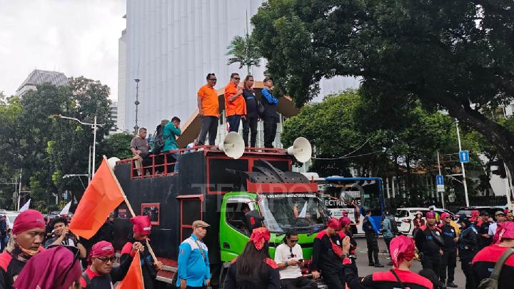Dalam aksi unjuk rasa yang digelar hari ini, massa dari Partai Buruh dan Konfederasi Serikat Pekerja Indonesia (KSPI) menuntut agar UMP Jakarta 2026 ditetapkan minimal sebesar Rp 5,89 juta, sesuai dengan kebutuhan hidup layak pekerja ibu kota.